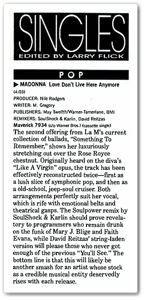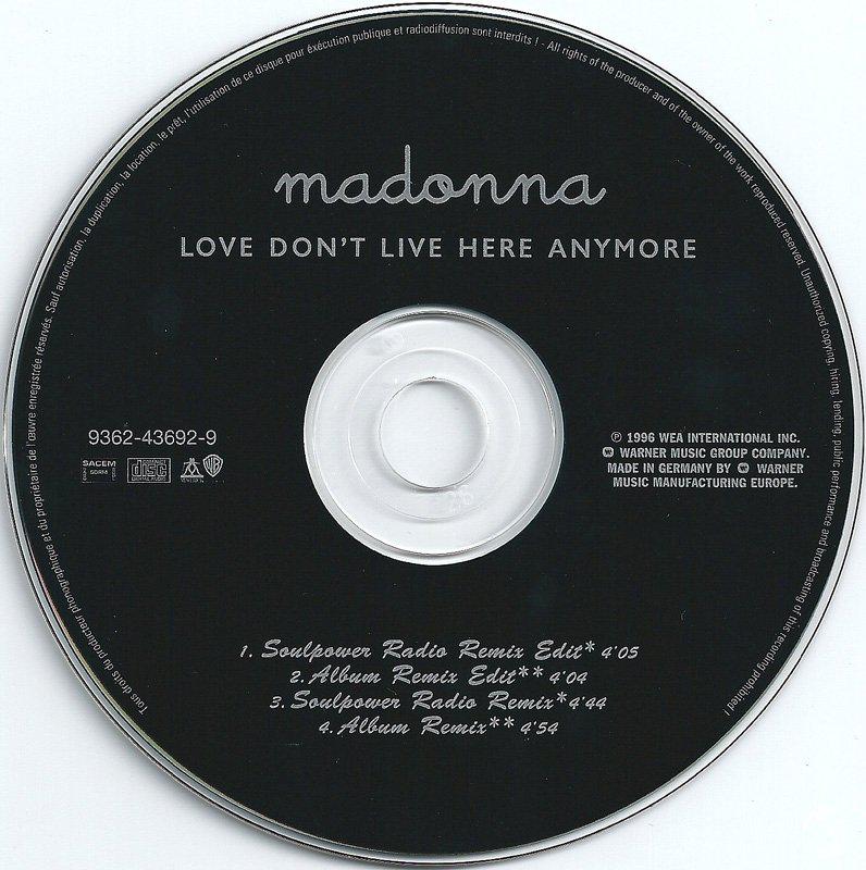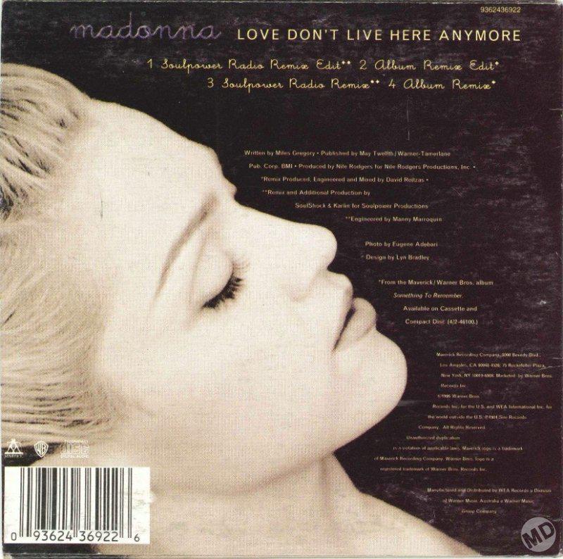 - «Love Don’t Love Here Anymore» fue lanzado como segundo single de «Something to Remember» en USA luego de «You’ll See», el 19 de Marzo de 1996.