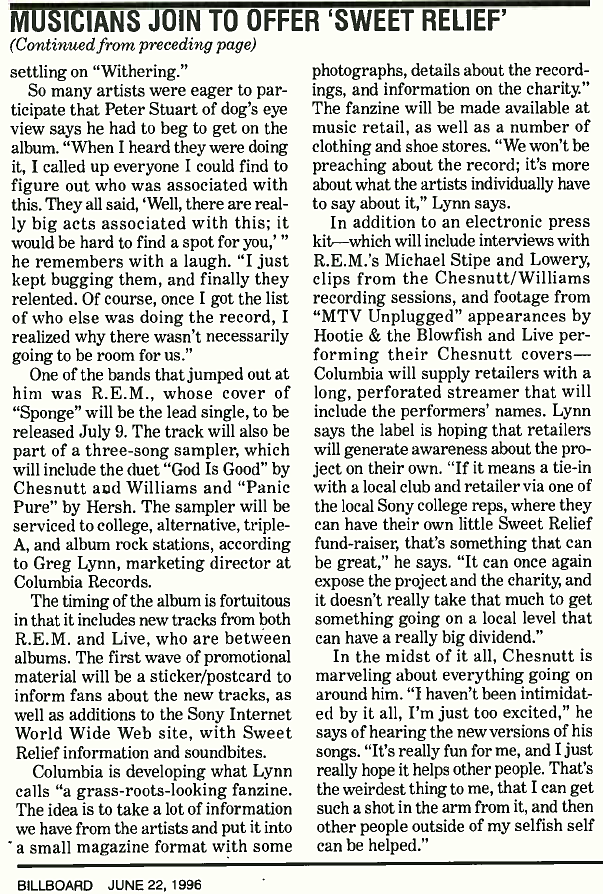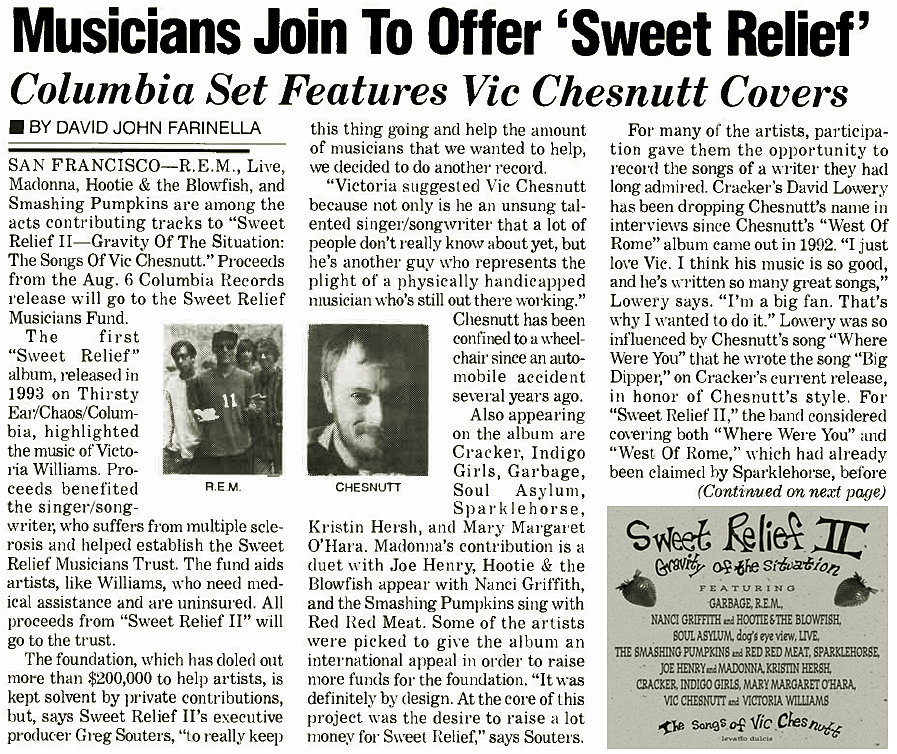 Inicialmente Joe Henry fue contactado por la Fundación y la discográfica para producir una canción y fue él mismo el encargado de convencer a Madonna de hacer un dueto juntos. Esta sería la primera colaboración profesional entre ambos, ya que luego Henry colaboraría con la Reina del Pop con temas como «Don’t Tell Me», «Jump», «The Devil Wouldn’t Recognize You» y «Falling Free». Esto dijo Joe Henry a la revista «Q»: «no conozco a Vic, pero la canción que hice es ‘Guilty by Association’, que Vic escribió sobre el albatros de la celebridad de Michael Stipe. De alguna manera, Vic consiguió que Michael cantara los coros en la canción sin que él supiera que la canción trata sobre él. Entonces, cuando pregunté si podía hacer esa canción, porque tampoco sabía de qué se trataba, alguien dijo: ‘¿Por qué no le pides a Madonna que cante la parte de Michael?’ Dado que la ironía es tan rica y iba a beneficiar a Vic, yo estuve dispuesto a hacer la llamada telefónica. Ella fue una muy buena compañera».