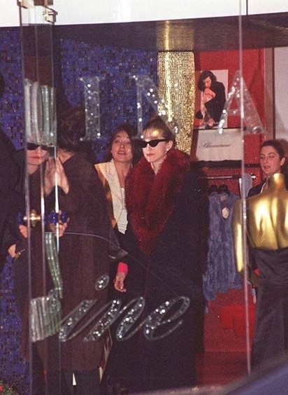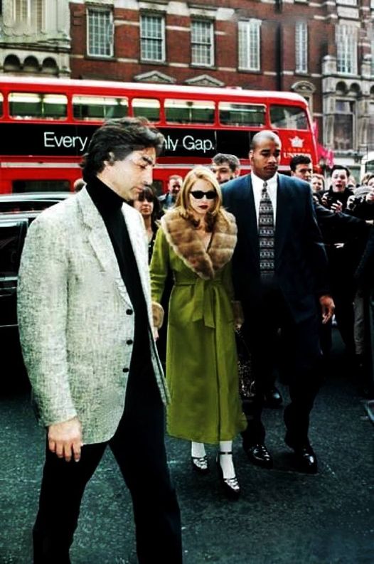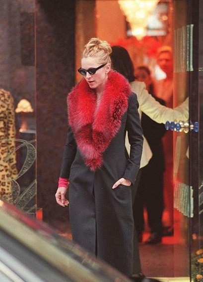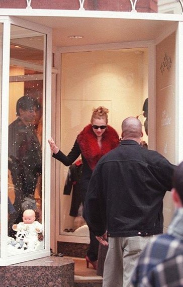 El Martes 17 de Diciembre, Madonna llega a Londres para continuar con su gira de promoción de «Evita». Se hospedó en el «Carlton Tower Hotel» y durante tres días, la cantante realizaría una serie de entrevistas y conferencia de prensa para promocionar el film. Pero antes, se tomó un tiempo libre para salir a recorrer la ciudad y realizar algunas compras de navidad junto a su manager Caresse Henry y su amigo, el director Alek Keshishian. Aquí la vemos luciendo un impresionante tapado con cuello de piel colorada de «Versace» mientras recorría la tienda «Bluemarine» de Anna Molinari.