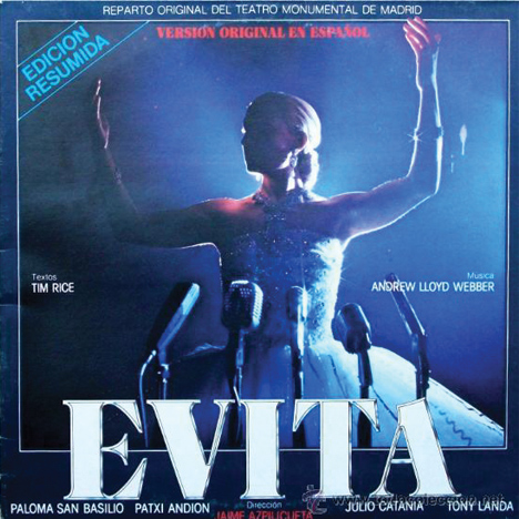 Se realiza el estreno del musical por primera vez en idioma español. En el «Teatro Monumental» de Madrid con Paloma San Basilio como Eva, Patxi Andión como Che y Julio Catania como Perón. La obra en España tuvo un éxito masivo estando en cartel desde 1980 hasta 1982 cuando se traslada a Barcelona al «Teatro Tivoli» estando allí hasta abril de 1983 cuando se decide realizar una impresionante gira por Latinoamérica que incluyó Puerto Rico, Colombia, Venezuela, Ecuador, Perú, Chile y luego Estados Unidos. Argentina había prohibido la obra durante el gobierno militar.