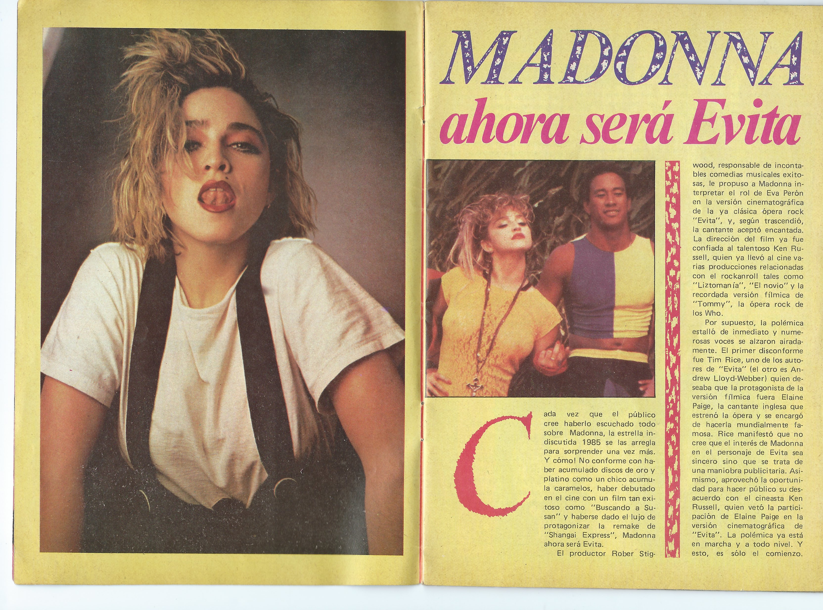 Paramount continuaba buscando escenarios para el film, principalmente en México mientras la producción seguía buscando directores. Se busco a Herbert Ross, quien lo rechazó para hacer «Footlose» (1984), Richard Attenborough, Alan J. Pakula y Hector Babenko, todos ellos dieron la negativa a «Evita». En 1986 comienzan las tratativas para que Francis Ford Coppola dirigiera el film y es en este momento en que una joven Madonna entra en escena. Madonna realizó unas pruebas para Stigwood quien quedó encantando con la cantante pensando que era «perfecta para el papel». De hecho la noticia de que Madonna protagonizaría «Evita» salió en algunas revistas del momento.