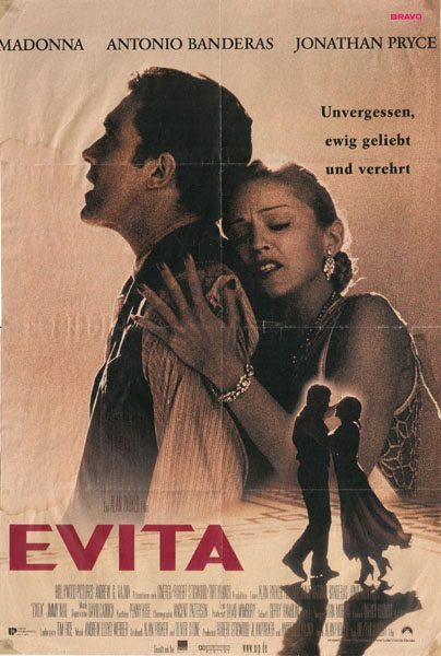 - El film estuvo dirigido por Alan Parker, producido por Robert Stigwood y Andrew G. Vajna para Cinergi Pictures y protagonizado por Madonna, Antonio Banderas y Jonathan Pryce.