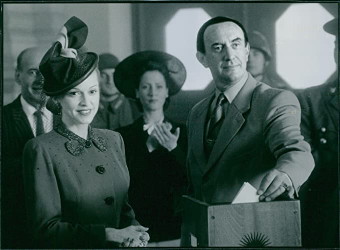 El papel del presidente Juan Perón es interpretado por Jonathan Pryce, uno de los actores principales de Gran Bretaña, que ganó el premio al Mejor Actor del Festival de Cine de Cannes en 1995 por su papel protagónico como el crítico y biógrafo de Bloomsbury Group Lytton Strachey en «Carrington» de Christopher Hampton, y fue nominado como Mejor Actor de teatro en un Musical por su papel protagónico de Fagin en «Oliver» de Lionel Bart. Pryce ha ganado premios Tony al mejor actor por sus actuaciones en Broadway como el stand-up skinhead en «The Comedians» de Trevor Griffiths y su papel teatral más conocido como la estrella de «Miss Saigon», por la que también recibió un Olivier por Actuación excepcional en un musical. Ganó el prestigioso premio SWET (Society for West End Theatres) al Mejor Actor por su interpretación de Hamlet en el Royal Court Theatre en 1980, habiendo sido nominado para el mismo premio el año anterior por su actuación en «The Taming of the Shrew» en la Royal Shakespeare Company. Sus créditos cinematográficos en ese momento incluían «El almuerzo del labrador» de Richard Eyre, «Brasil» de Terry Gilliam, la película de James Foley sobre «Glengarry Glen Ross» de David Mamet, papeles protagónicos en las películas para televisión «Barbarians at the Gate» con James Garner, en la que fue nominada para los premios Emmy y Golden Globe, y «The Age of Innocence» de Martin Scorsese. Además de su carrera en el teatro y el cine, Pryce ha hecho muchas apariciones impresionantes en dramas televisivos, como «Selling Hitler» para Channel 4 en el Reino Unido y «Mr. Wroe’s Virgins» para la BBC.