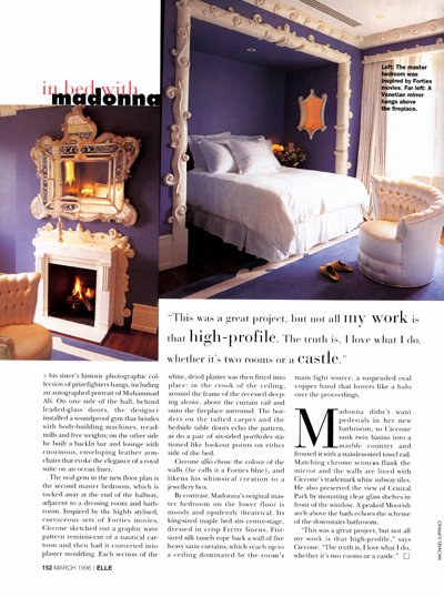 Luego del divorcio con Sean Penn, Madonna decide instalarse definitivamente en New York y comienza a usar este apartamento como vivienda estable. La mini mansión de Madonna ubicada en el 5 y 6 piso, cuenta con más de 6 mil pies cuadrados de superficie, un frente de más de 33 metros con vistas al Central Park, techos de más de 3 metros de alto, 6 dormitorios, 8 baños, una gran cocina con mesadas de mármol, gimnasio, guardarropas y oficina. El apartamento fue completamente renovado y re-decorado en 1990 por el hermano de la cantante, Christopher Ciccone, con un estilo Art-Deco y con obras de arte de la colección privada de la cantante que incluía a Tamara de Lempicka, Laure Albin-Guillot, Fernand Léger y Picasso. El departamento fue publicado en las revistas «Elle» de 1997 y «Architectural Digest» de 1991. Durante su estadía en el «Harperley Hall», Madonna no fue la más simpáticas de las vecinas ya que las permanentes quejas de sus vecinos sobre las ruidosas fiestas y la música a alto volúmen llevaron a que la cantante tuviera que enfrentar varias denuncias y hasta un juicio por «ruidos molestos». La cantante tuvo que pagar al edificio una multa de U$S 16 millones. Finalmente, el apartamento fue puesto a la venta en 2012 con un precio de U$S 23.5 millones aunque terminó siendo vendido en 2013 por U$S 19 millones.