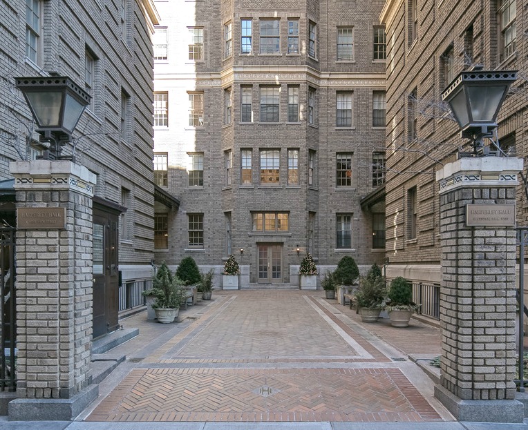 El edificio «Harpeley Hall» es una impresionante torre de apartamentos ubicado en una zona exclusiva frente al Central Park de Manhattan, más precisamente en la esquina de las calles Central Park West y 64th West. Diseñado por el arquitecto Herny W. Wilkinson, tiene estilo «Georgiano» y «Arts & Crafts» y estuvo terminado en 1911. El «Haperley Hall» cuenta con un garaje privado para coches y bicicletas, lavandería, una terraza con salón de usos múltiples y un gimnasio. Madonna adquirió inicialmente un dúplex en este edificio en 1985 mientras se encontraba casada con Sean Penn, sin embargo durante su matrimonio, este apartamento no tuvo demasiado uso, ya que Madonna se había instalado junto a su marido en una mansión en Los Angeles. Igualmente, este dúplex era usado ocasionalmente cuando Madonna venía de visita a New York.