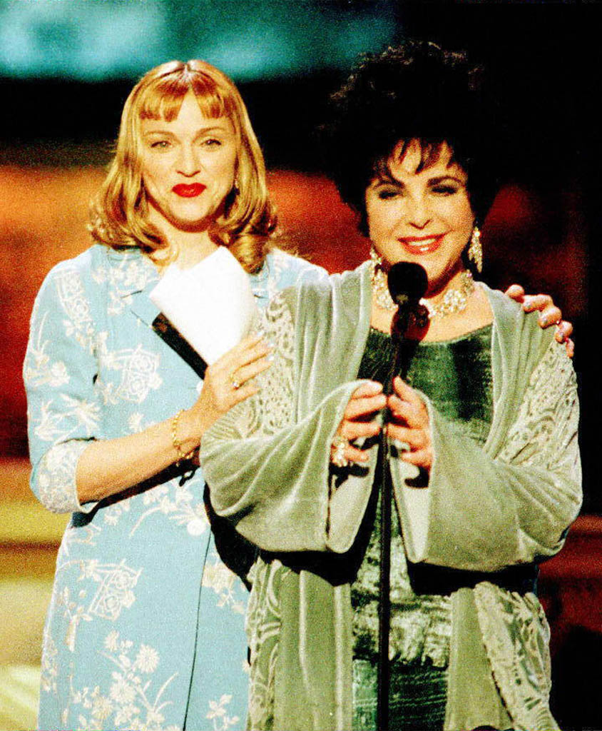 Madonna fue una de las tantas celebridades que se presentaron para celebrar el cumpleaños de la mítica actriz Elizabeth Taylor. El evento se llevó a cabo en «The Pantages Theatre» de Los Angeles. Mientras Taylor la escuchaba atentamente desde la primera fila junto a Michael Jackson, Madonna dijo: «cuando era una niña quería ser tan hermosa como Elizabeth Taylor; quería montar a caballo con mi largo y brillante cabello al viento; quería bailar y bailar con un vestido de terciopelo. Quería ojos color violeta y piel translúcida y una cintura pequeña y quería que Montgomery Cliff, Paul Newman, James Dean y Rod Hudson me abrazaran». Madonna recordó con emoción cuando vio por primera vez a Taylor en el film «A Place in the Sun» (1951) y destacó la incansable actividad solidaria de la actriz con su lucha contra el SIDA. Luego del discurso, Taylor subió al escenario para agradecer y abrazar a Madonna.