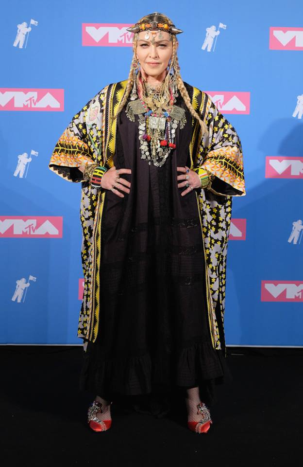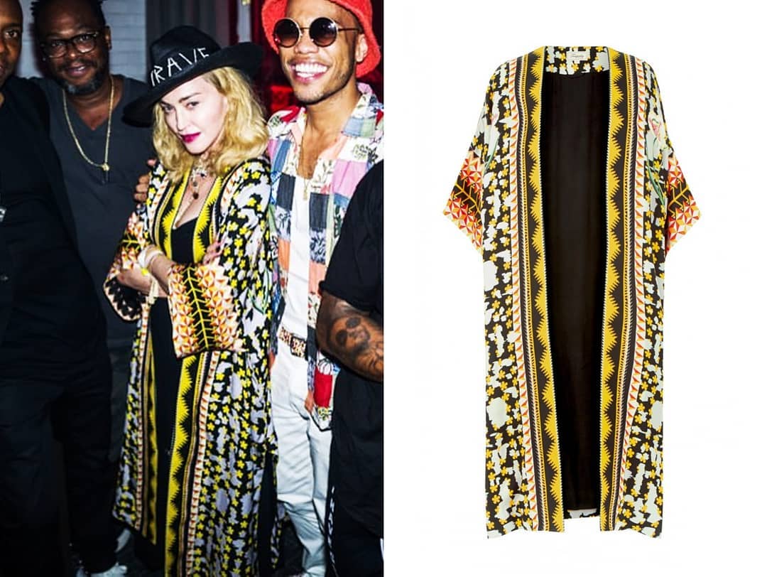 De Temperley London es también el famoso y llamativo kimono tribal con patrones geométricos multicolor que Madonna lució durante la entrega de los premios MTV Video Music Awards 2018 en New York. Luego lo volvería a usar un año más tarde en 2019 para concurrir al show del comediante David Chappelle.