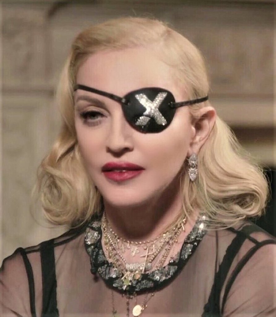 Como ya sabemos, la marca definitiva de «Madame X» es el parche en el ojo; «Madame X es una agente secreta que viaja alrededor del mundo y en esas aventuras fue herida en un ojo» esa fue la simple explicación que Madonna dio para portar semejante accesorio. Durante la era «Madame X», el parche ha ido variando de acuerdo al estilo de ese momento, algunos más sencillos, otros más trabajados pero todos inolvidables. Madonna se presentó en cada entrevista, show, actuación en vivo con el parche para reforzar su alter ego «X». El parche también fue una pieza fundamental de «The Madame X Tour». La mayoría de estos parches están realizados a medida en látex y cuero trabajado, el diseñador Gregory Kara, realizó una serie de piezas en color negro, unos genérico con una «X» de brillantes plateada y otra roja que Madonna usó en casi todas sus presentaciones; luego otro con incrustaciones en piedras y canutillos usado durante la actuación del concurso «Eurovision 2019» y finalmente una con una «X» multicolor para la actuación en el Gay Pride en New York. Para el video de «Medellín», se realizaron tres parches en látex a cargo del artista Atsudo Kudo, uno en color negro con perforaciones tipo filigrana, otro rojo (también usado para el portfolio de promoción del disco) y otro blanco que para el video fue cubierto por alfileres y ganchos.