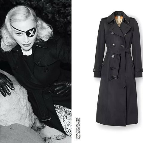 Dos tapados de lana de la casa Burberry en color beige cruzado usado para el portfolio del disco «Madame X» tomado por Steven Klein y otro en color negro con doble línea de botones para el portfolio de Ricardo Gomes.