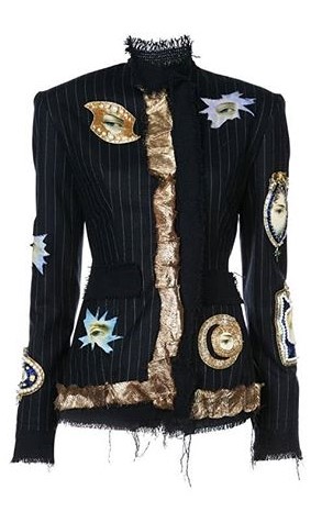 También vemos dos sacos estilo militar con complejos y finísimos bordados que simulan galardones, medallas y ornamento militar. Ambas chaquetas fueron realizadas a pedido por la diseñadora Elizabeth Emmanuel para el evento de los GLAAD Media Awards llevado a cabo en mayo de 2019 en New York. Luego vemos un saco negro con aplicaciones de parches, bordados y cadenas realizado por Keko Hainswheeler con intervención de Gregory Kara usado durante el programa especial de la MTV para la premiere mundial del video «Medellín».