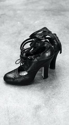 Zapatos de cuero trabajado en color negro, tacón cuadrado, acordonado y con dos cintas tobilleras realizados a medida por la firma Miu Miu. Este mismo modelo de zapato es y fue muy utilizado por Madonna. Estos, en particular, fueron usados en el video «Medellín», en la actuación de la entrega de los Billboard Music Awards, en el portfolio de JR para la revista del New York Times y luego durante gran parte de los ensayos de la gira «The Madame X Tour».