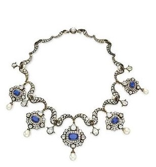 - Collar de diamantes, perlas y zafiros antigüedad original de mediados de 1800 de Fred Leighton Estate.