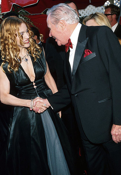 Originalmente, Madonna iba a usar joyas de Martin Katz, tal como lo hizo en el Globo de Oro de 1998: «El día de los Oscar, su estilista llamó a la 1 de la tarde. y preguntó: «¿Tienes diamantes grandes?» Envié sus copias por fax, pero ella volvió a llamar y dijo que no había tiempo suficiente. Sin embargo, al día siguiente, la estilista pidió prestada algunas joyas para que Madonna las usara en un próximo video», dijo Katz en una entrevista para la revista Los Ángeles en junio de 1998. El collar fue subastado por Christie’s en 2007 y se vendió por la suma de U$S 120.100.