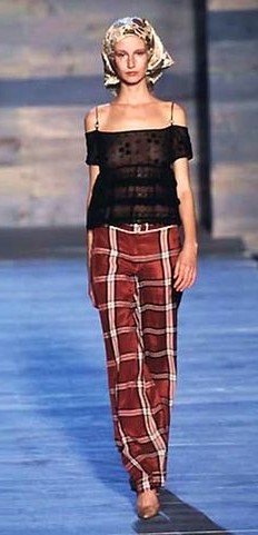 - Pantalón tiro bajo de diseño escocés de la colección primavera-verano 1998 de Rifat Ozbek.