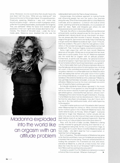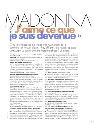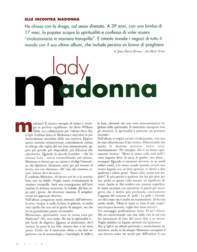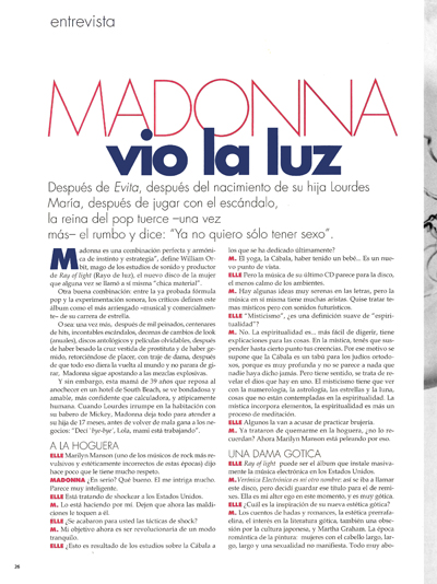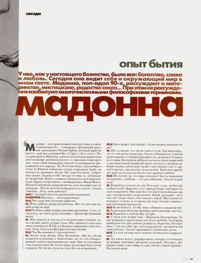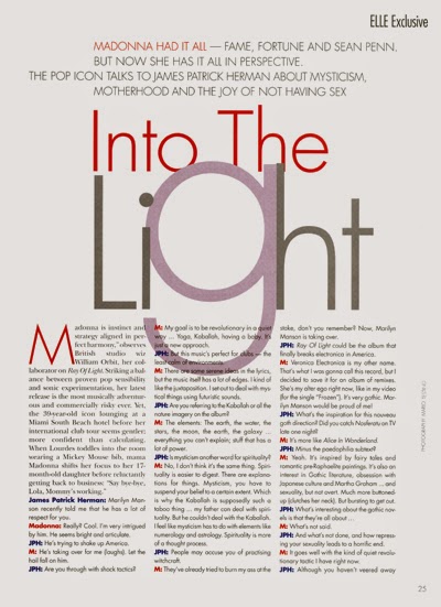 En Abril de 1998 se lanza una entrevista realizada por Barbara Ellen para la revista «Elle» UK, con fotos tomadas del portfolio realizadas para la promoción del disco «Ray of Light». Lo curioso, es que a pesar de ser un lanzamiento mundial con ediciones en varios países, Madonna sólo aparece en la tapa de la edición de Singapur.