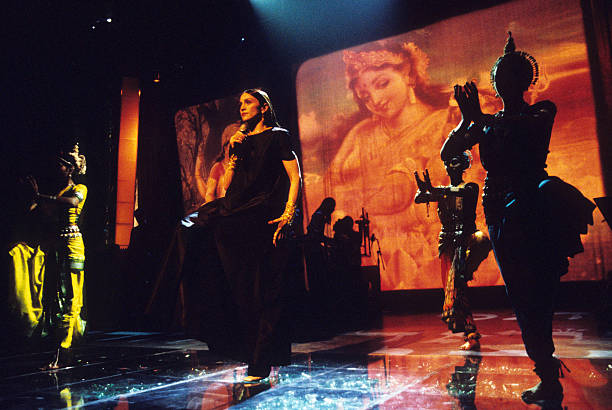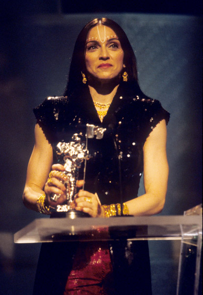 Madonna abrió la ceremonia interpretando dos temas de su reciente disco «Ray of Light». El show comienza con la cantante vestida con una larga túnica negra de seda y maquillaje estilo hindú en su rostro y tatuajes de henna en sus manos. Cabe destacar que esta fue la primera vez que vemos a Madonna con el nuevo look del año, el cabello liso y teñido de negro, dejando atrás aquella musa renacentista de cabellos dorados de la primera mitad del año. Interpreta la canción «Shanti-Ahstangi», canción en sánscrito que forma parte del disco y que había sido cara B del primer single «Frozen». La acompañan un grupo de cuatro bailarinas ataviadas al estilo tradicional de la India mientras realizan una coreografía acorde.