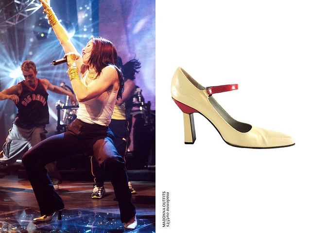 - Zapatos en color crudo con taco y tobillera en color de la colección otoño-invierno 1998 de Prada.