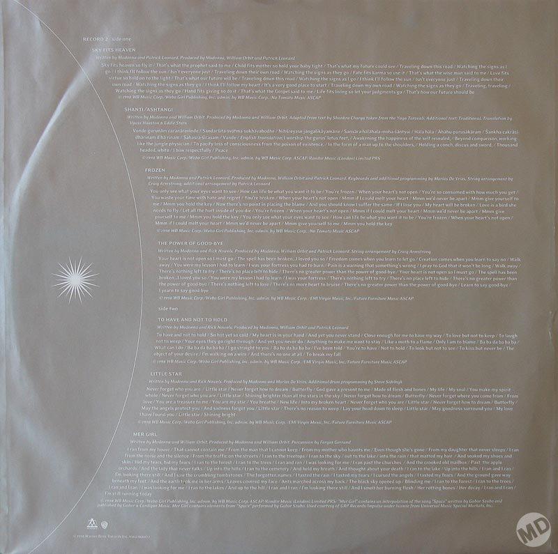 El diseño del disco «Ray of Light» como así también de todos los singles del mismo estuvo a cargo de Kevin Reagan junto a Kerosene Halo. Las fotografías fueron tomadas por Mario Testino durante un extenso portfolio realizado el 28 de noviembre de 1997 en el «Paris Theatre» de Miami. De esta sesión se tomaron varios sets que luego fueron usados para diferentes productos como la portada del single «Frozen» o la revista «Elle». El peinado estuvo a cargo de Orlando Pita; el maquillaje por Tom Pecheux y el estilismo por Lori Goldstein. Todas ediciones tanto en vinilo, casette o CD presentaban el mismo diseño y arte con idéntica tipografía y logo que para los dos primeros singles. En cuanto al booklet o librillo del CD presentaban más fotos de la misma serie e incluía los créditos y las letras de las canciones. La caja de CD en empaque jewelcase es transparente para observar un fondo.