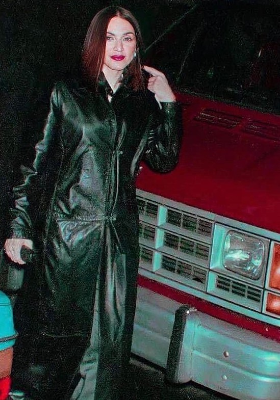 Abajo, Madonna junto al equipo del programa y el conducto Larry King y luego captada por paparazzis saliendo de los estudios de la CNN. Podemos ver que la diva lució el pantalón de Gucci gris metalizado con bordados que ya había usado algunas veces el año previo.
