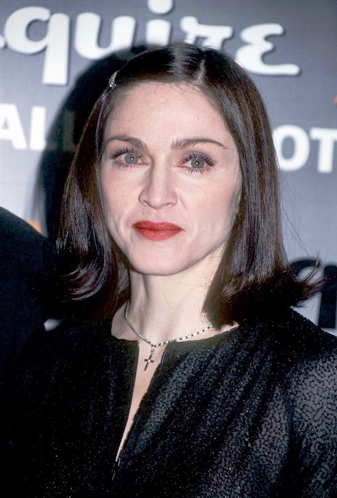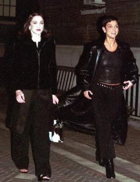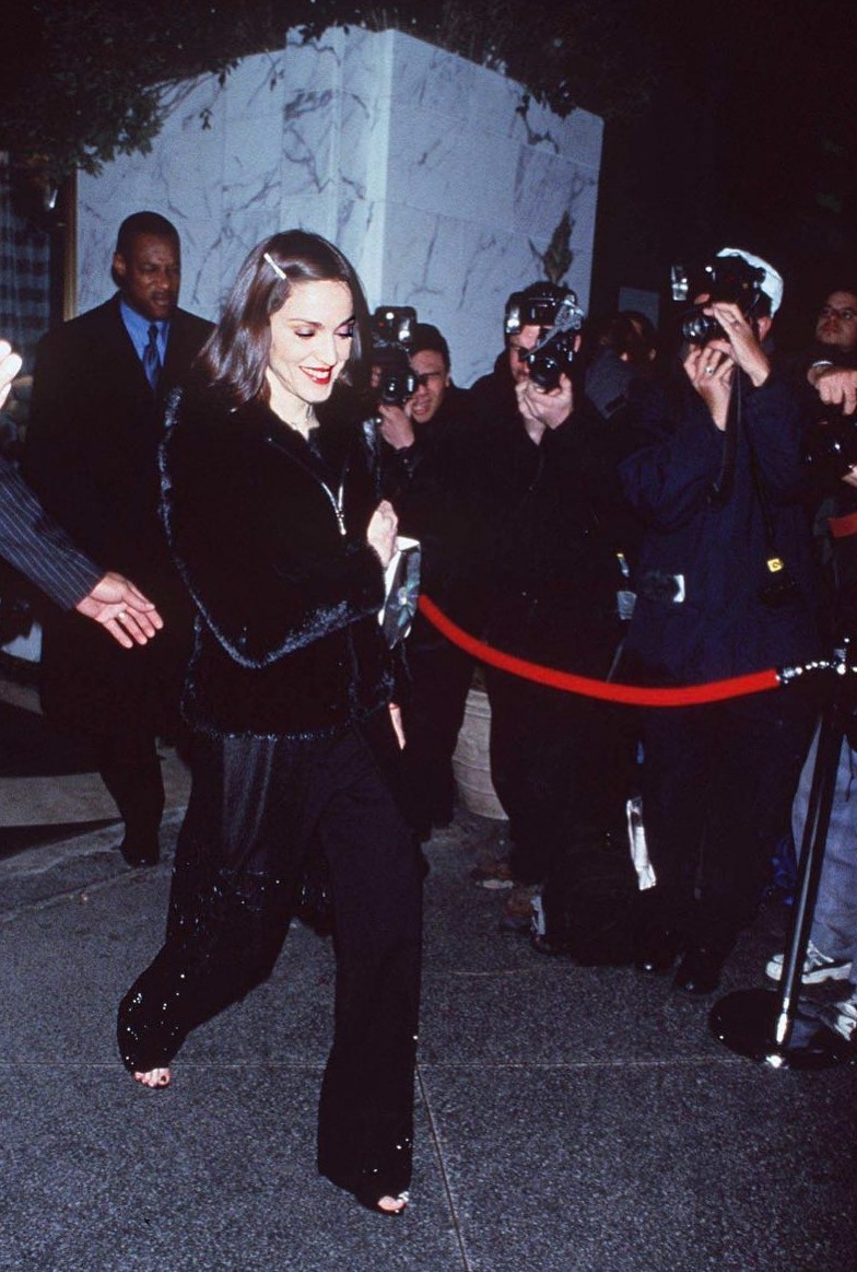 Abajo Madonna e Ingrid Casares saliendo del apartamento de la cantante en Manhattan y llegando al evento.
