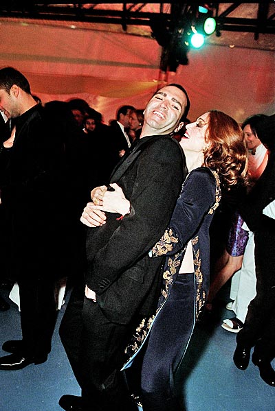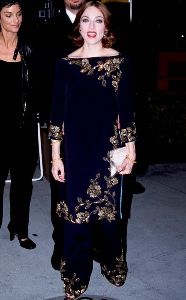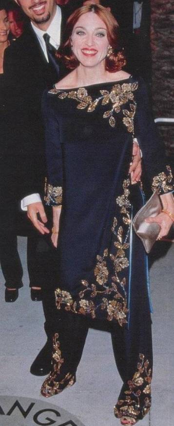 La fiesta post entrega de Premios de los Premios de la Academia se realizó el 21 de Febrero de 1999 en el restaurant Morton ubicado en West Hollywood, California. Todas las celebridades se dieron cita aquella noche para celebrar una de las fiestas más importantes del cine norteamericano. Madonna concurrió acompañada de un grupo formado por su amiga la periodista Juliette Hohnen; su hermano Christopher Ciccone; el actor Rupert Everett, Guy Oseary su mano derecha en Maverick y la inseparable (e infaltable) Ingrid Casares. La diva asistió con un estilo muy similar al que se mostraría poco tiempo después en la mega campaña publicitaria para Max Factor, con el cabello corto, algo ondulado y color miel. Lució un conjunto de chaqueta larga y pantalón de terciopelo color azul noche con bordados en dorado.