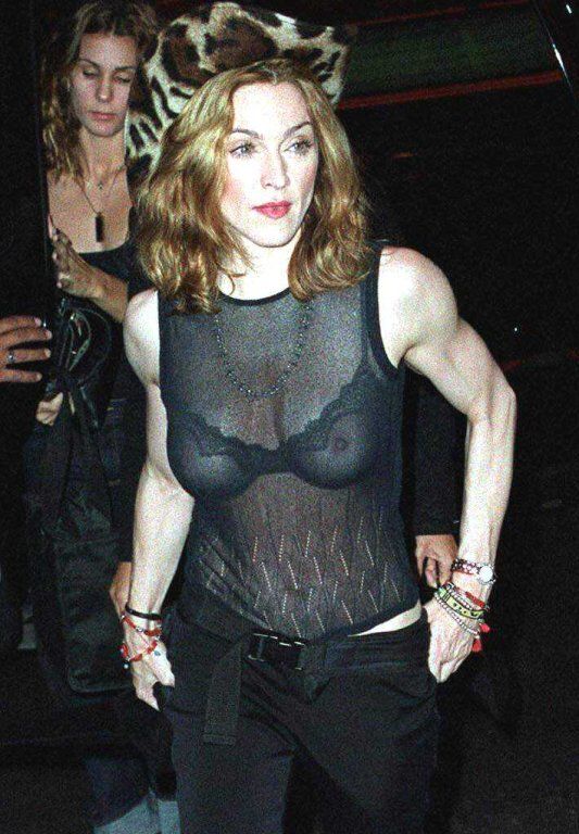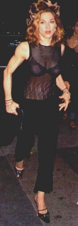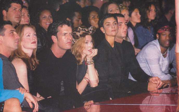 Madonna junto a la pequeña Lourdes asisten al desfile de la colección primavera-verano 2000 de la firma «Versace». El evento se llevó a cabo en el Roseland Ballroom de New York, la diva estuvo además acompañada del actor Rupert Everett, y por supuesto, la infaltable Ingrid Casares. Madonna concurrió con un sugerente top transparente y un curioso sombre de cowboy en animal print. ¿Una pista de lo que sería su nuevo look con «Music«?.