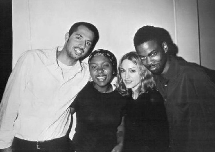 Madonna junto a Guy Oseary, Me’Shell Ndegéocello y Chris Rock aparentemente en un concierto de Me’Shelle en el «Bowery Ballroom».