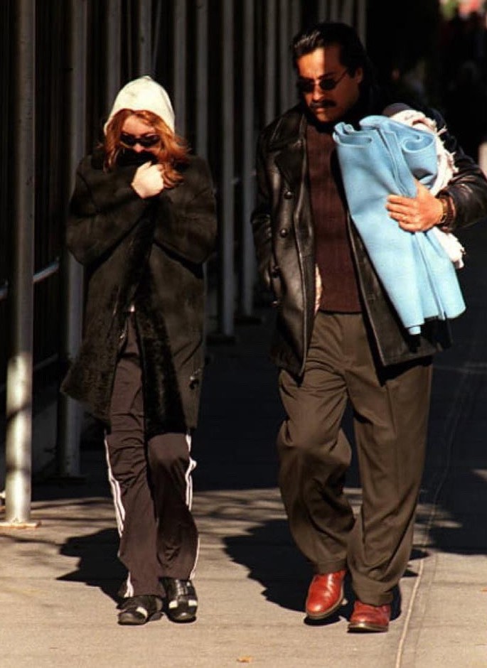 Varias instantáneas de Madonna en las calles de New York a comienzos de Febrero de 1999, en una de ellas, la vemos junto a su peinador Luigi Muremu.