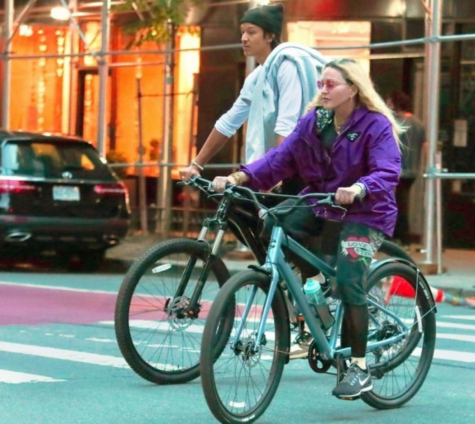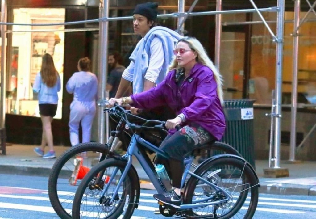 MADONNA Y SU NOVIO RECORRIENDO MANHATTAN EN BICICLETA.