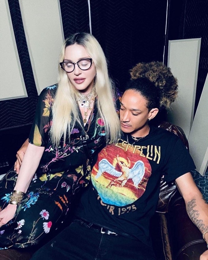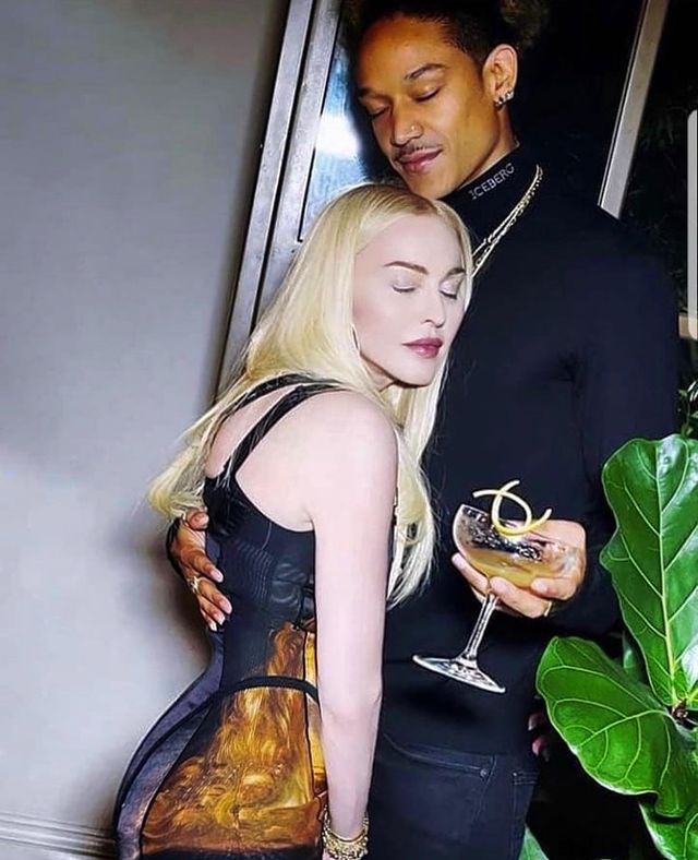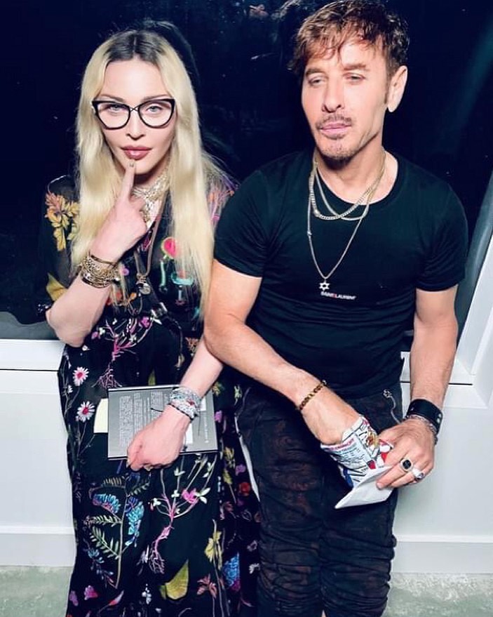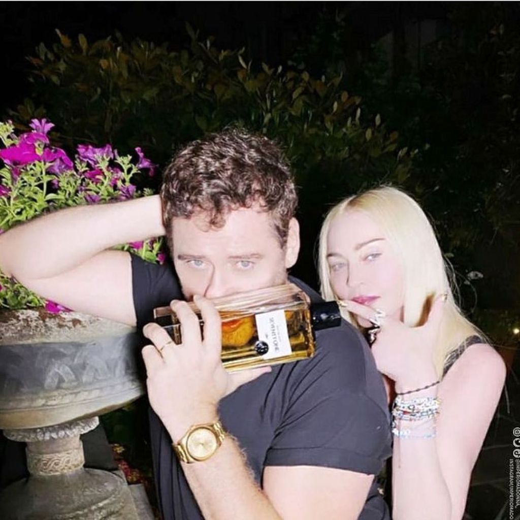 Madonna, su novio y el fotógrafo Mert Alas en la fiesta de lanzamiento del gin «Seventyone».