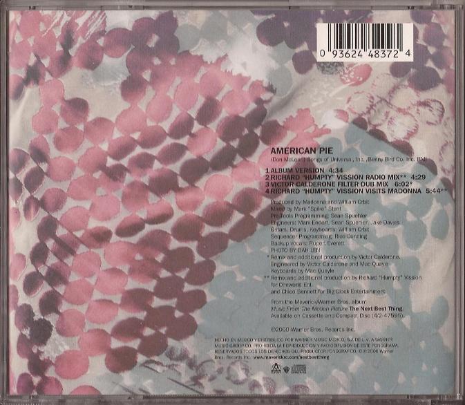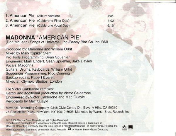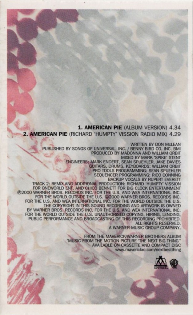 - La canción «American Pie» es un tema original de 1971 que Madonna re-interpretó y re-grabó para ser incluida en el soundtrack del film «The Next Best Thing» protagonizada por ella misma y el actor Rupert Everett.
