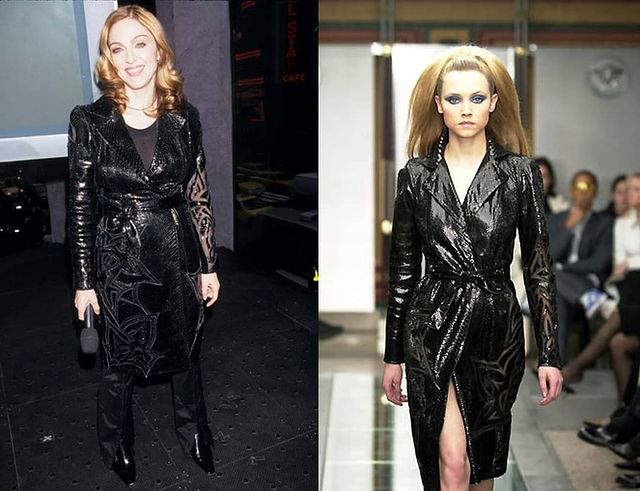 - Tapado de cuero negro símil cocodrilo con apliques y detalles de transparencias en las mangas perteneciente a la colección otoño-invierno 2000 de la firma Versace.