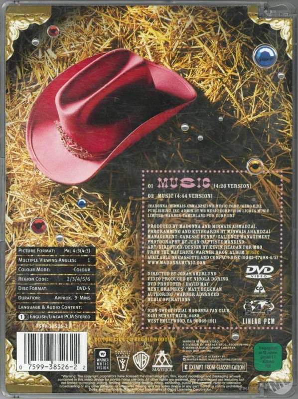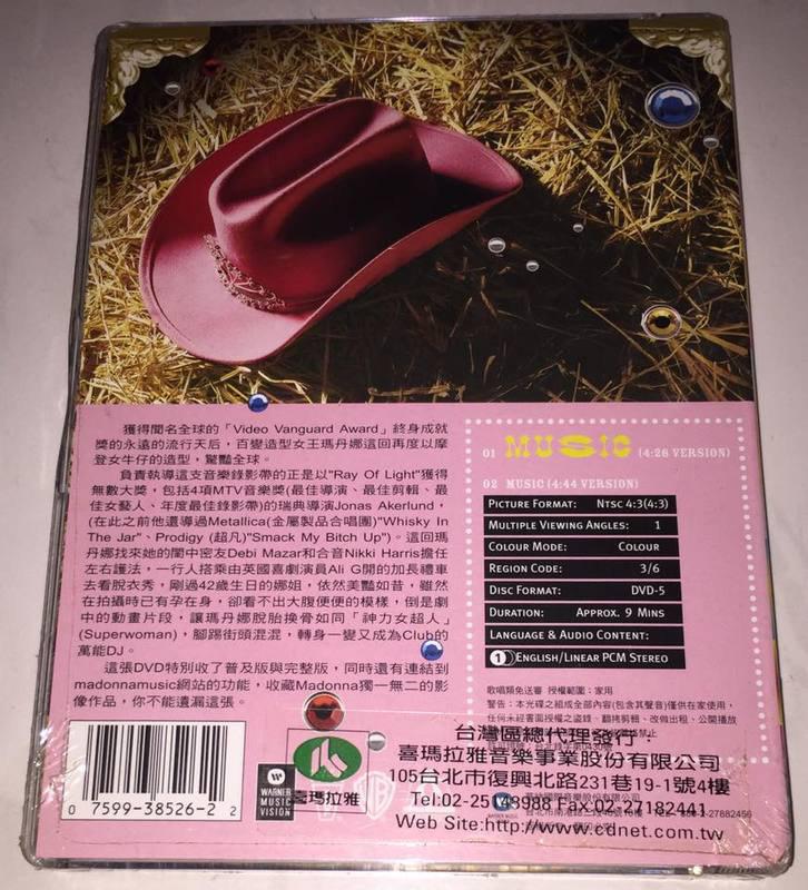 El 05 de Septiembre de 2000, «Music» es lanzado como DVD single para reforzar toda la gran maquinaria de merchandising que rodeaba al sencillo. Recordemos que el single «Music» fue lanzado en todos los formatos posibles y en diferentes versiones haciendo el deleite de los coleccionistas. Para sumar un formato más a la lista, se editó el videoclip en formato DVD single, el primero de todo el catálogo de Madonna. Recordemos que ya se habían lanzado los VHS singles como «Justify my Love» (1991) y «Ray of Light» (1998), sin embargo, y con la llegada del nuevo milenio, el formato DVD estaba en auge y Warner no podía dejar de pasar esta oportunidad.