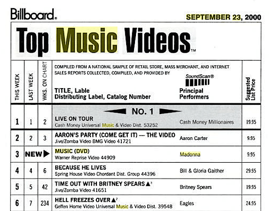 El DVD debutó en el Billboard TOP Music Video Sales el 23 de Septiembre del 2000 en el puesto N°03, su posición más alta y permaneciendo 9 semanas en total para salir del ranking el 09 de noviembre. El DVD puede encontrarse en internet por aproximadamente U$S 15.