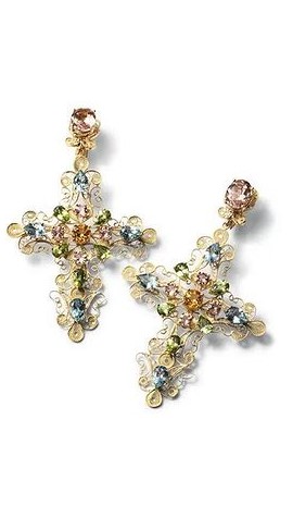 - Pendientes de cruces de oro 18k con piedras multicolores de «Dolce & Gabbana».
