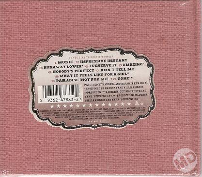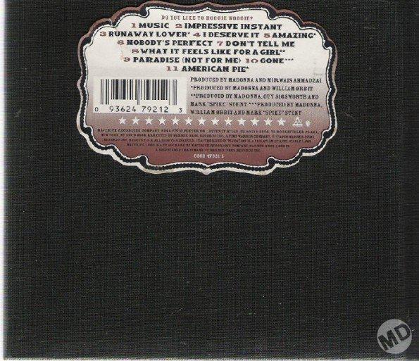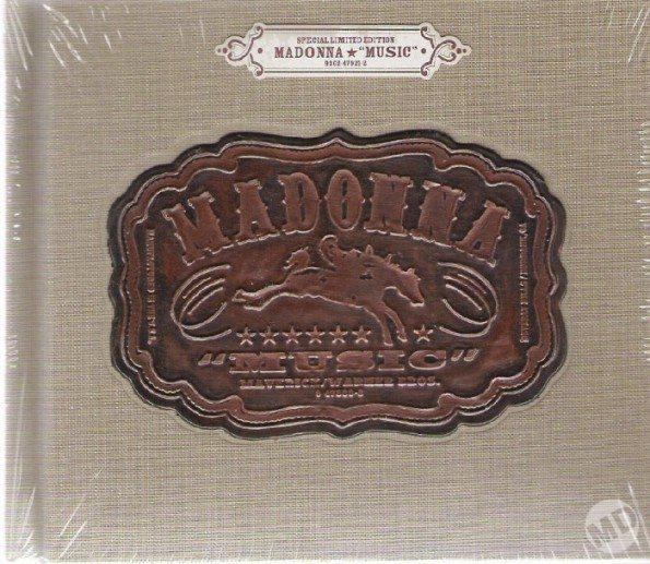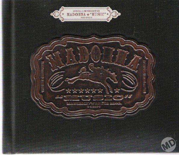 Así como «Ray of Light» tuvo su versión limitada en formato CD con el diseño holográfico, «Music» no quiso quedarse atrás y también tuvo su formato especial; pero esta vez no se lanzó un sólo diseño sino cuatro para pesadilla de los coleccionistas más estrictos. La edición limitada de «Music» consistía en un empaque digipack de cartón forrado con tela simil cuero y con el logo de «Music» en metal pegado al frente. En el lomo del empaque se leía el nombre del disco en legras doradas. En la parte interior de la tapa viene pegado el booklet que es muy similar al de la versión regular con algunas hojas y fotografías más. La bandeja que sostiene el CD es de plástico transparente y se observa la misma imagen del zapato que en la edición regular del disco. El disco es exactamente el mismo en color café con el diseño de herradura.