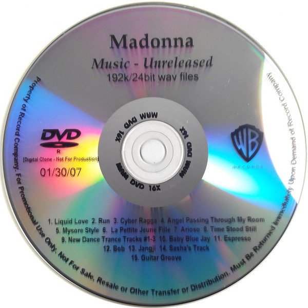A medida que pasa el tiempo y la tecnología avanza, ciertas canciones que antes nos parecían casi imposibles de poder escuchar, hoy las tenemos gracias al Internet. Madonna ha sido y es una fuente inagotable de canciones «desconocidas» y con cada disco nos podemos encontrar con una verdadera colección de temas que jamás vieron la luz pública. Muchas de estas canciones son verdaderamente buenas y los fans muchas veces se preguntan cómo no forman parte de algún disco. Como pasa con todos los álbumes de Madonna, una gran cantidad de demos y versiones tempranas han quedado en el camino y son desconocida por muchos. Con «Music» no podía ser al excepción a mediados de los 2000s comenzaron a surgir un Internet todos los demos que se prepararon para el disco, algunas canciones están una versión casi final y de otras tan solo conocemos el título. Veamos aquí una lista de los demos y maquetas hasta ahora conocidos de «Music». La mayoría de estas canciones se encuentran compiladas en un disco promocional y extremadamente raro lanzado por Warner en formato DVD-r el 30 de Julio de 2001, titulado «Music Unreleased». Este disco incluye 15 tracks, la mayoría demos del disco y algunas canciones instrumentales que extrañamente no tienen nada que ver con Madonna.