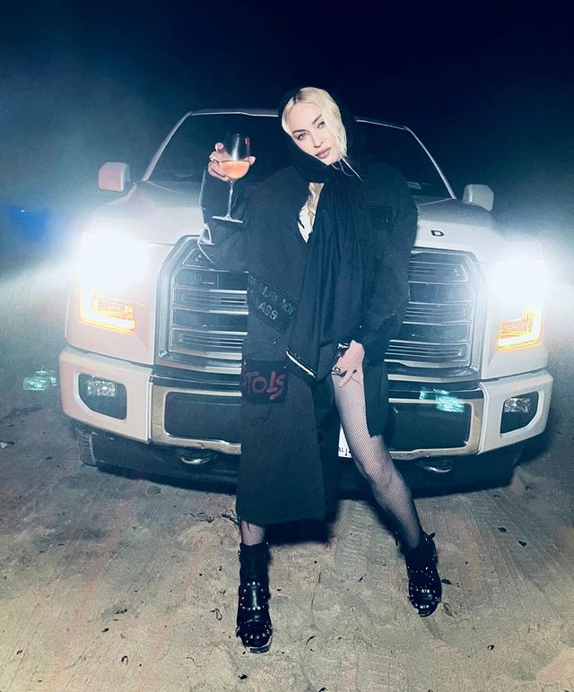 Otra sesión de fotos junto a su novio, esta vez de noche. Madonna comentó «verano frio» mientras lucía un tapado intervenido talle extragrande. Al parecer Madonna había comenzado a festejar previamente su cumpleaños con una noche en la playa disfrutando de fuegos artificiales.