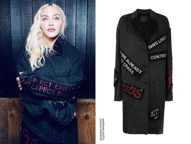 - Blusa de seda negra con hombreras de la colección otoño-invierno 2003 de Michaeland Hushi. Madonna usó por primera vez esta prenda durante su gira promocional de «American Life», más precisamente en el show «Absolut Madonna» de la cadena RTL en Alemania.