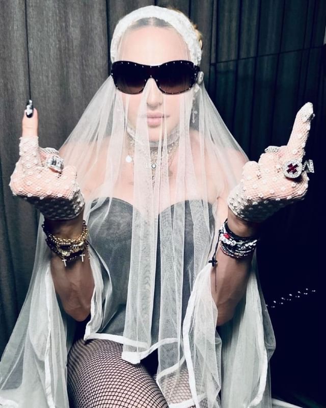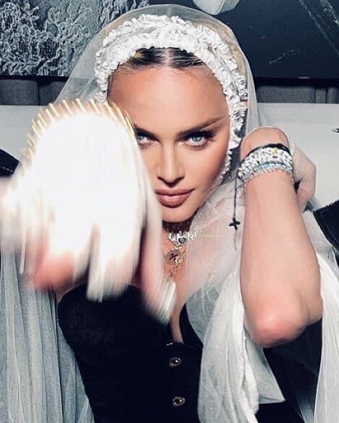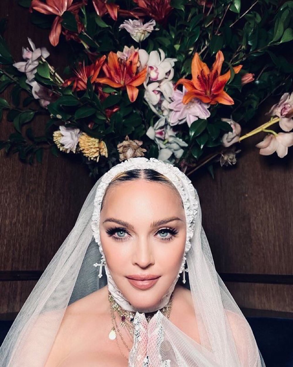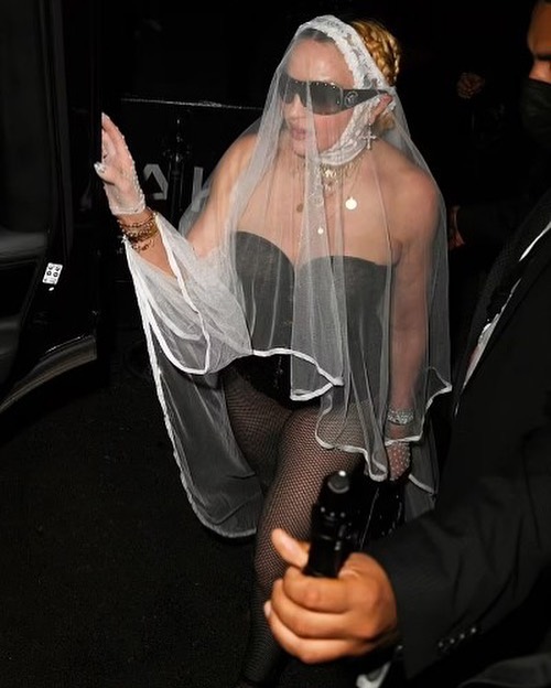 Para su aparición en la fiesta, la diva decidió cambiar un poco su atuendo variando en los zapatos y luciendo body negro junto a un impactante tocado blanco de novia en tul y encaje realizado especialmente por el diseñador Barragán quien realizó su propia versión del velo de novia que Madonna usó en su primera aparición en los premios MTV en 1984. La cantante se mostró muy divertida posando junto a Guy Oseary y otros artistas; en su cuenta de Instagram comentó que en esa fiesta ella tuvo su propia «Gala del MET», ya que no iba a asistir a dicho evento. El estilismo estuvo a cargo de Saint Rita, el maquillaje por Kali Kennedy y el peinado por Andy LeCompte.