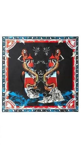 - Vestido de seda estampado «Mermaid» de la colección primavera-verano 2021 por Ricardo Tisci para «Burberry». Madonna usó otros vestidos de la misma colección, como el diseño «Maiden» durante el evento «Seventy One Eau de Nuit» en Julio 2021 y otro vestido diseño «Mermaid» para su fiesta de cumpleaños en Italia en Agosto 2021).