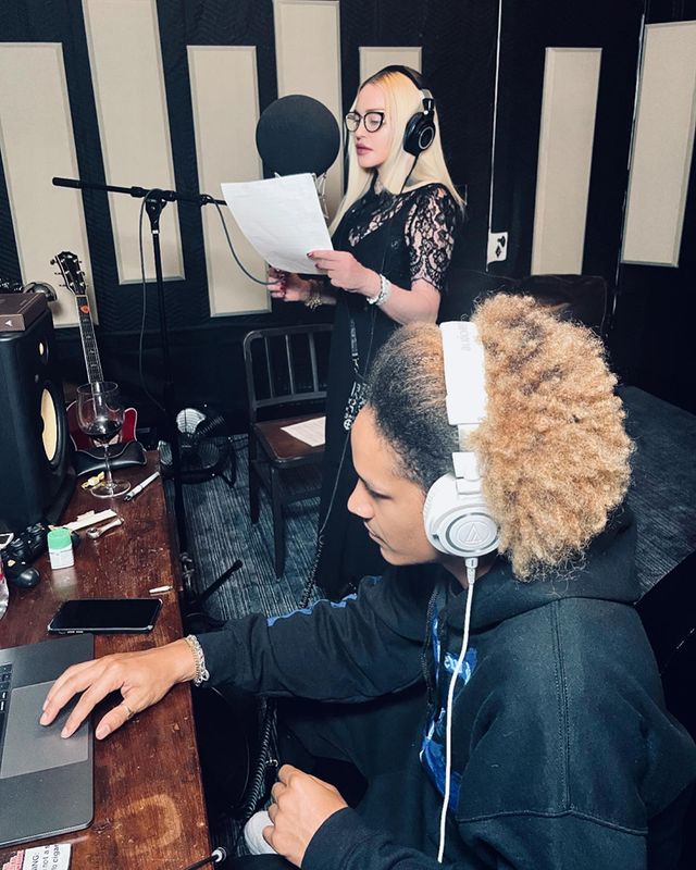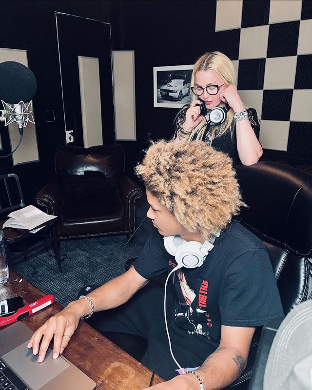 «En el estudio con mi Boo…» Madonna se mostró en un estudio de grabación junto a su novio Ahlamalik Williams. El joven frente a un ordenador y la diva parada frente a un micrófono con papeles en la mano… ¿nuevo proyecto?