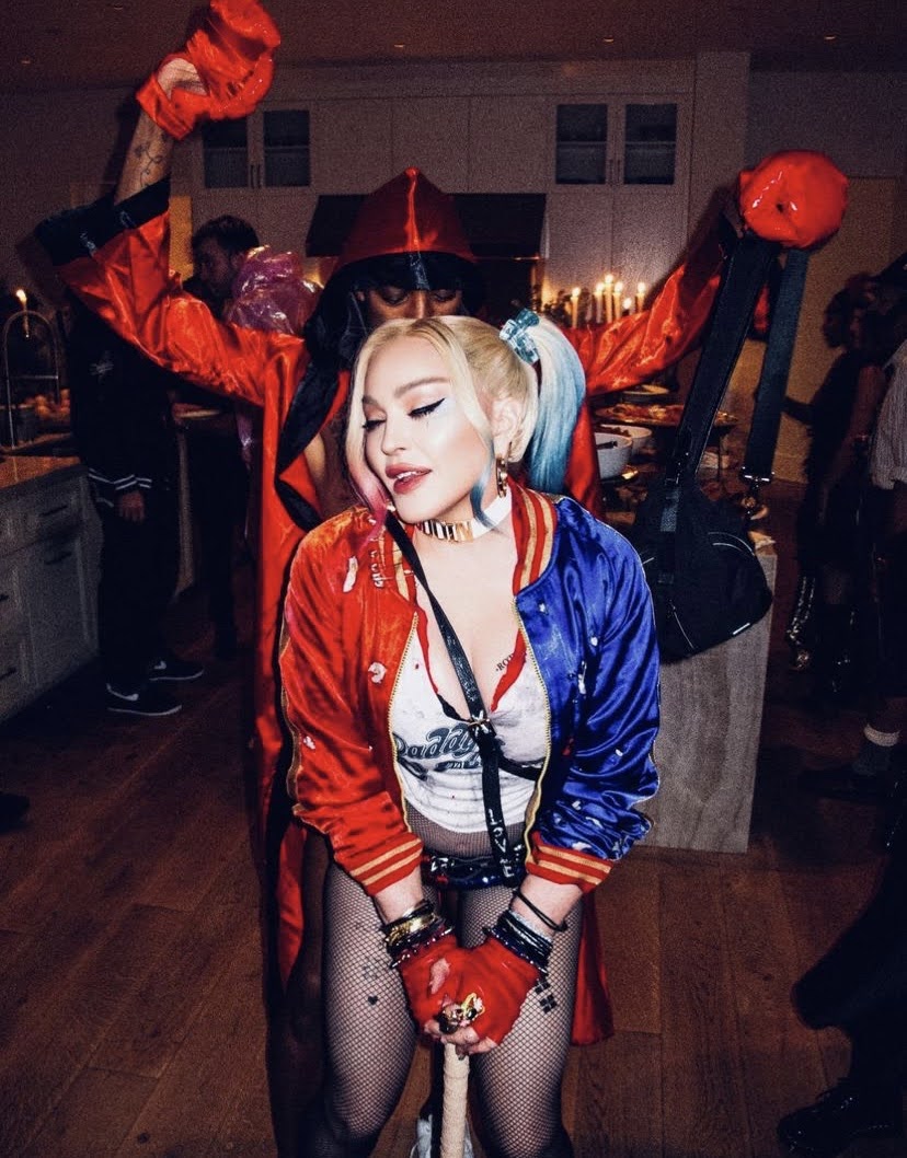 Madonna sí que sabe como festejar y cuando la época más tenebrosa del año llega, quien mejor que ella para lanzar una gran fiesta para celebrarlo. El fin de semana de «Halloween», Madonna decidió lanzar la casa por la ventana con una gran fiesta en celebración a la «Noche de Brujas». Gran cantidad de invitados, tragos, pizzas, disfraces y mucha pero mucha diversión fue lo que se vivió la noche del 30 de Octubre en su recientemente adquirida mansión de la zona de Hidden Hills en Los Angeles. Vestida con todo el atuendo del personaje de Harley Quinn, Madonna recibió a gran cantidad de amigos para pasar una noche de locura. Así lo vivieron celebridades como Lil Wayne, B Akerlund, su hija Lourdes León, Derrell Bullock, el diseñador Jeremy Scott, su manager Guy Oseary, su fotógrafo personal Ricardo Gomes, Andy LeCompte, Chaz Buzan y Talia Favia, Naomi Yasuda, Rita Melssen entre muchos otros. Las fotos fueron compartidas por la propia diva en sus redes sociales y también publicadas en una nota en la versión digital de la revista «Interview». Puedes ver el artículo original aquí!
