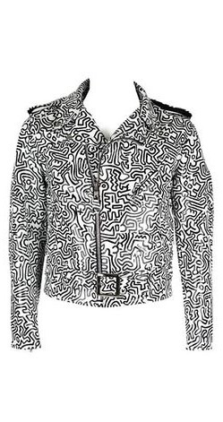 - Chaqueta de cuero en blanco y negro modelo «Perfecto» de SchottNYC por Jeremy Scott de la colección 2009.