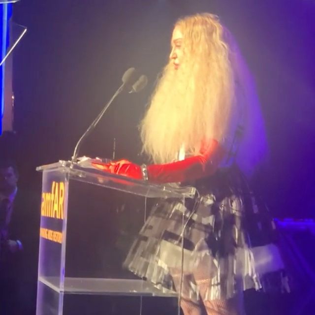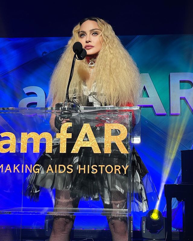Madonna fue la invitada sorpresa al evento de la 11° gala anual de la amfAR (The Foundation for AIDS Research) llevado a cabo el jueves 04 de Noviembre por la noche en West Hollywood. Alrededor de 500 personas se reunieron en el «Pacific Design Center» en WeHo, entre los que se citaban a Ashley Benson, Addison Rae, Bella Thorne, Diplo, Bebe Rexha y OneRepublic. Hacia el final de la noche, un conductor anunció que se subastaría una fotografía de Madonna firmada por ella misma cuando de repente el público vio con asombro aparecer sobre el escenario a la misma Reina del Pop con un peinado despampanante. Madonna, una colaboradora de la fundación de larga data, llegó para dar un discurso de casi 15 minutos para honrar a su amigo, el diseñador Jeremy Scott a quien se le otorgó el «Courage Award» por su acción y colaboración para terminar con el flajelo del HIV/SIDA. La cantante, también se refirió sobre el SIDA asegurando que la enfermedad aún no es cosa del pasado. Después de la ceremonia, la cantante se reunió con el diseñador para celebrar en una fiesta privada.