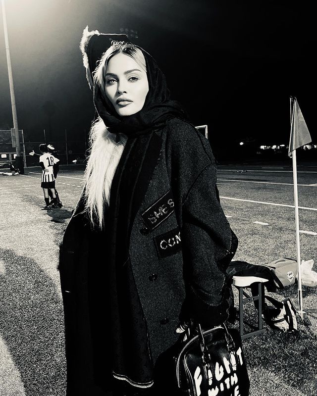 Madonna asiste a un partido del Juventus para ver a su hijo David Banda; «night games…» escribió mientras se mostraba con un look misterioso en fotos blanco y negro.