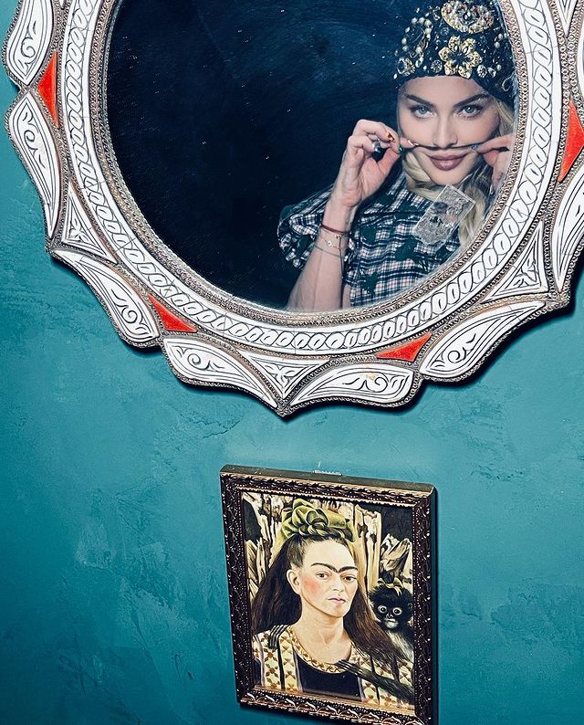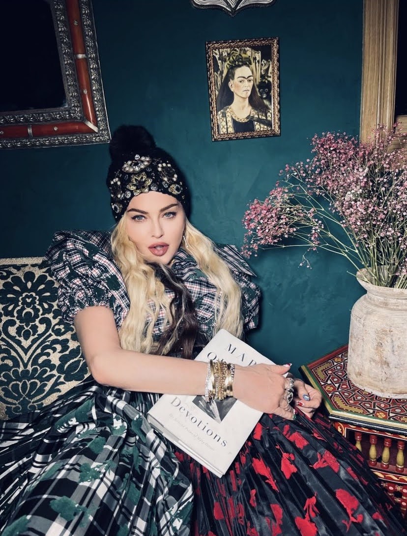 «En mi propio rincón, en mi pequeña silla, puedo ser lo que quiera ser»; Madonna escribió en su cuenta de Instagram subiendo una serie de fotos en donde la vemos relajarse en una habitación de su mansión de Los Angeles. La diva se montró con un amplio vestido estampado de Chopova Lowena y una especie de turbante bordado en una llamativa habitación decorada con elementos y ornamentos orientales (lo que nos recuerda un poco a su época marroquí allá por el 2018). Madonna dice que en aquel rincón ella puede ser quien quiera ser (aunque eso es algo que hace a menudo). En las fotos se la ve posando frente a un espejo, relajada en un sillón y hasta tocando el piano. También nos dió una pista de lo que está leyendo en estos momentos: «Devotions» de Mary Oliver.