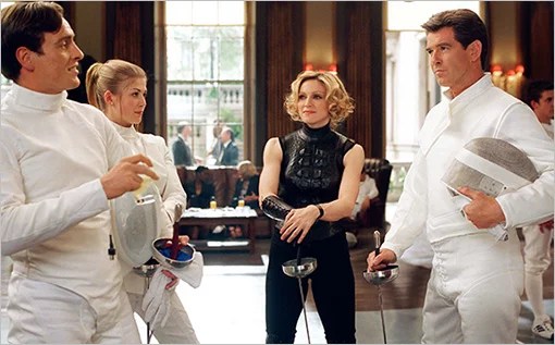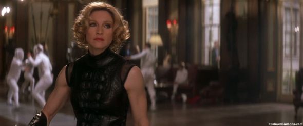 Madonna interpreta a Verity, una sensual instructora de esgrima enfundada en un ajustadísimo corset de cuero negro mientras intercambia algunas frases de doble sentido con James Bond. Una actuación olvidable, para algunos hasta bizarra, sin embargo, Madonna se aseguró de que su nombre figurara en la lista de las cientos de celebridades en formar parte del universo Bond.