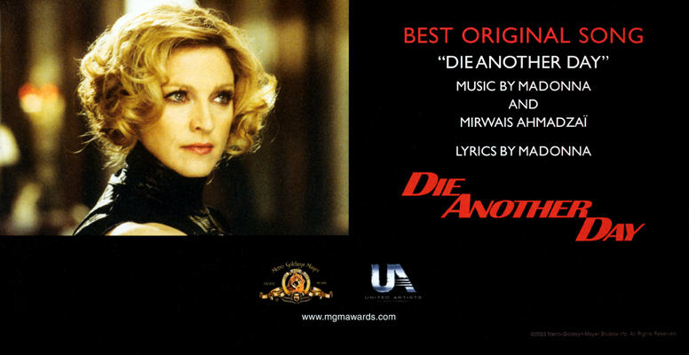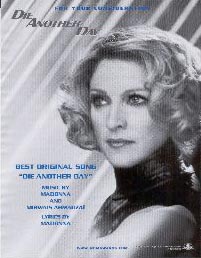 Pero lo que más nos importa es la presencia de la Reina del Pop en el film. Madonna no sólo compuso, produjo e interpretó la canción principal de la banda sonora del film, canción que lleva el mismo nombre, «Die Another Day» sino que además, tuvo una fugaz (y algo extraña participación) con un cameo. Madonna solía decir que no le gustaban los cameos (recordemos su experiencia en los filmes «Blue in the Face» de 1994 y «Girl 6» en 1996) pero al parecer, figurar entre el elenco de una de las películas Bond fue algo más tentador. La participación de Madonna se grabó el 08 de Julio de 2002 y consistía en una breve participación de poco más de 2 minutos; sin embargo, aunque sea breve, Madonna no se privó de tener sus escenas con interacción con el protagonista del film, Pierce Brosnan.