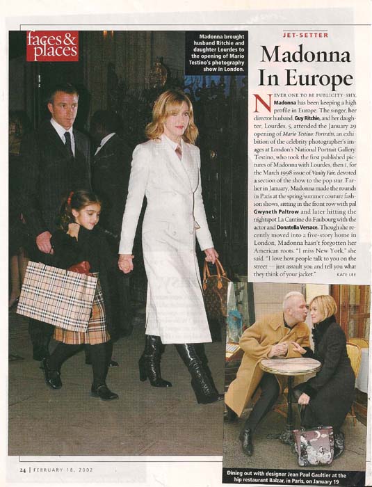 El día 20 de Febrero de 2002, Madonna concurre al concierto de Michelle Branch en el Irving Plaza de New York.
